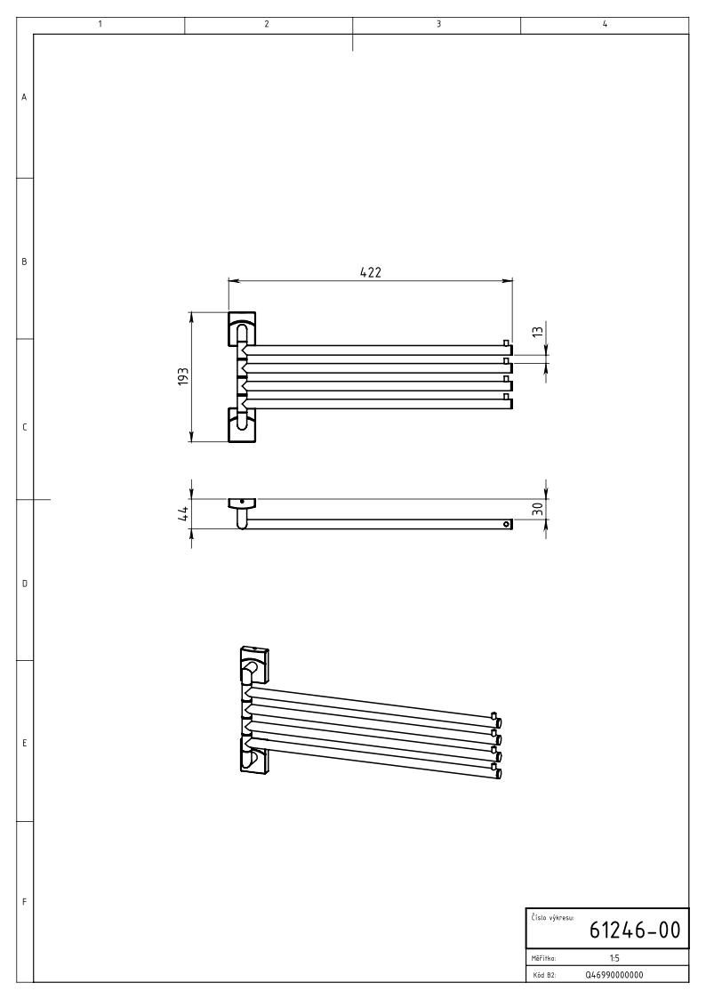 Čtyřramenný držák ručníků chromový. Montáž lepením nebo vrtáním.