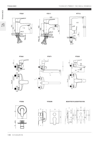 TITANIA NICE TECHNICKÉ VÝKRESY • TECHNICAL DRAWINGS TITANIA NICE 97001 97011 97713 97060 97071 97020 97050 97050R BOX97051R, BOX97051RX 108 NOVASERVIS