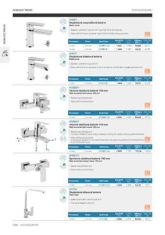 NOBLESS TREND • Baterie s uzávěrem výpusti 5/4”. Typ 41001/1 je bez výpusti.