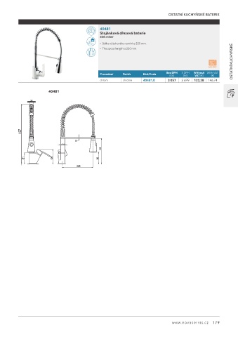 • Délka výtokového ramínka 220 mm.