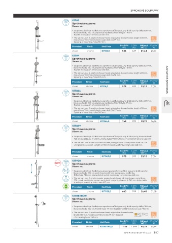 • Souprava obsahuje 3polohovou úspornou sprchovou růžici, posuvný držák sprchy,