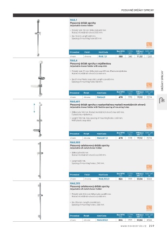Spacing of mounting holes 560 mm. DRŽÁKY SPRCHY