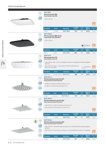 RŮŽICE PEVNÉ SPRCHY Provedení Finish Kód/Code Bez DPH S DPH Without With VAT