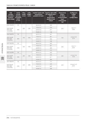 TABULKA VÝKONŮ OTOPNÝCH TĚLES - CHROM
