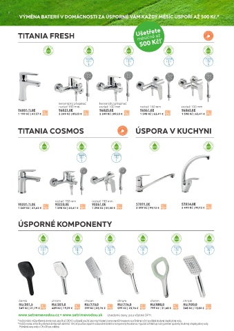 * Každý měsíc může 4členná domácnost uspořit až 500 Kč v případě použití úsporných baterií, komponentů Novaservis a průměrné roční spotřebě studené i teplé pitné vody.