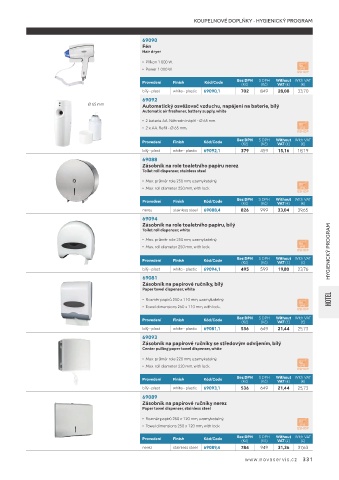 • Max. roll diameter 250 mm, with lock. HYGIENICKÝ PROGRAM