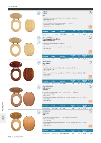 WC SEDÁTKA Provedení Finish Kód/Code Bez DPH S DPH Without With VAT