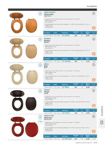 Provedení Finish Kód/Code Bez DPH S DPH Without With VAT WC SEDÁTKA