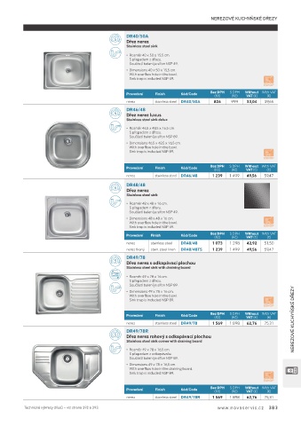 nerez stainless steel DR49/78 1 569 1 898 62,76 75,31 NEREZOVÉ KUCHYŇSKÉ DŘEZY