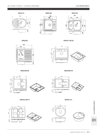 TECHNICKÉ VÝKRESY • TECHNICAL DRAWINGS KUCHYŇSKÉ DŘEZY DR44/74 DR50/58 DR49/62 DR60/80 DRGM1/48/58 DRGM48/58 DRGM48/78 DRGM3/48/79 DRGM1/51 KUCHYŇSKÉ DŘEZY www.novaservis.cz 393