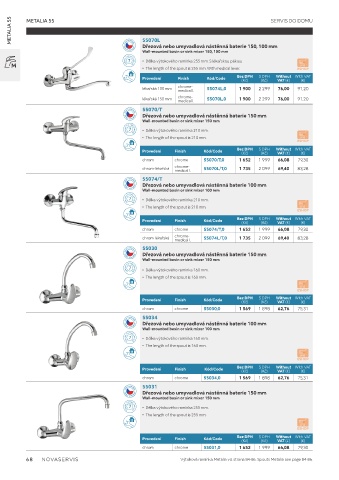 68 NOVASERVIS Výtoková ramínka Metalia viz strana 84-86. Spouts Metalia see page 84-86.