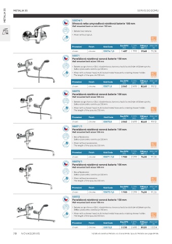 70 NOVASERVIS Výtoková ramínka Metalia viz strana 84-86. Spouts Metalia see page 84-86.
