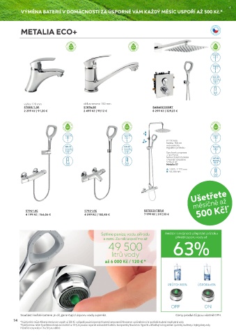 14 * Každý měsíc může 4členná domácnost uspořit až 500 Kč v případě použití úsporných baterií, komponentů Novaservis a průměrné roční spotřebě studené i teplé pitné vody.