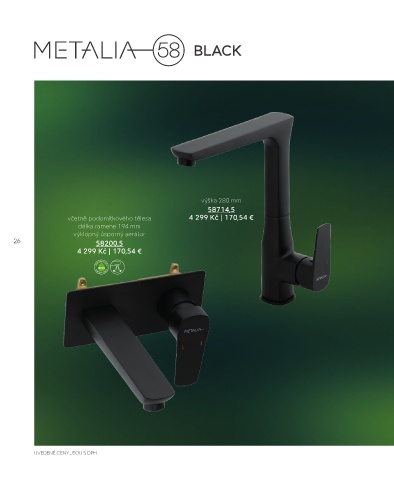 BLACK výška 280 mm 58714,5 včetně podomítkového tělesa 4 299 Kč | 170,54 € délka ramene 194 mm výklopný úsporný aerátor 26 58200,5 4 299 Kč | 170,54 € UVEDENÉ CENY JSOU S DPH.