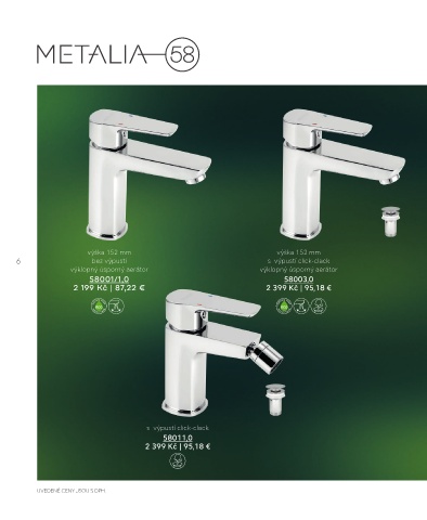 výška 152 mm výška 152 mm 6 bez výpusti s výpustí click-clack výklopný úsporný aerátor výklopný úsporný aerátor 58001/1,0 58003,0 2 199 Kč | 87,22 € 2 399 Kč | 95,18 € s výpustí click-clack 58011,0 2 399 Kč | 95,18 € UVEDENÉ CENY JSOU S DPH.