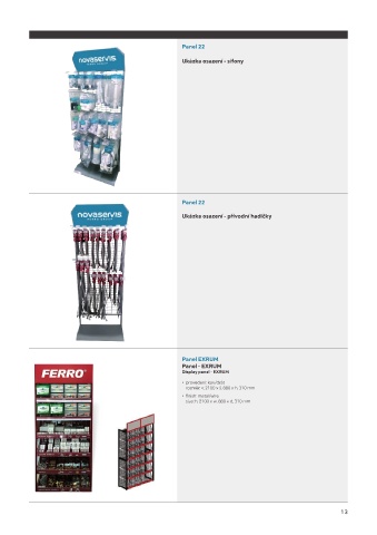 Panel 22 Ukázka osazení - sifony Panel 22 Ukázka osazení - přívodní hadičky Panel EXRUM Panel - EXRUM Display panel - EXRUM • provedení: kov/drát rozměr: v. 2100 x š. 880 x h. 310 mm • finish: metal/wire size: h. 2100 x w. 880 x d. 310 mm 13