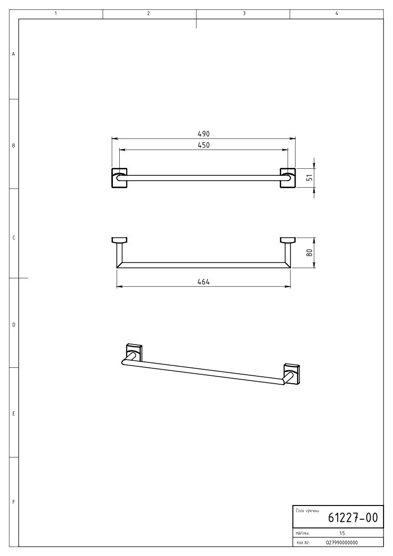 Držák ručníků 500 mm chromový. Montáž lepením nebo vrtáním.