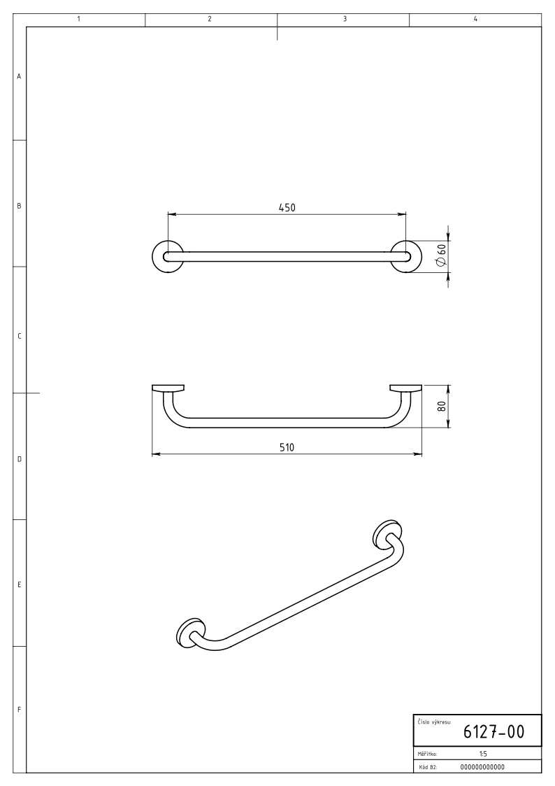 Rozměr 510 x 85 mm. Rozteč 450 mm.