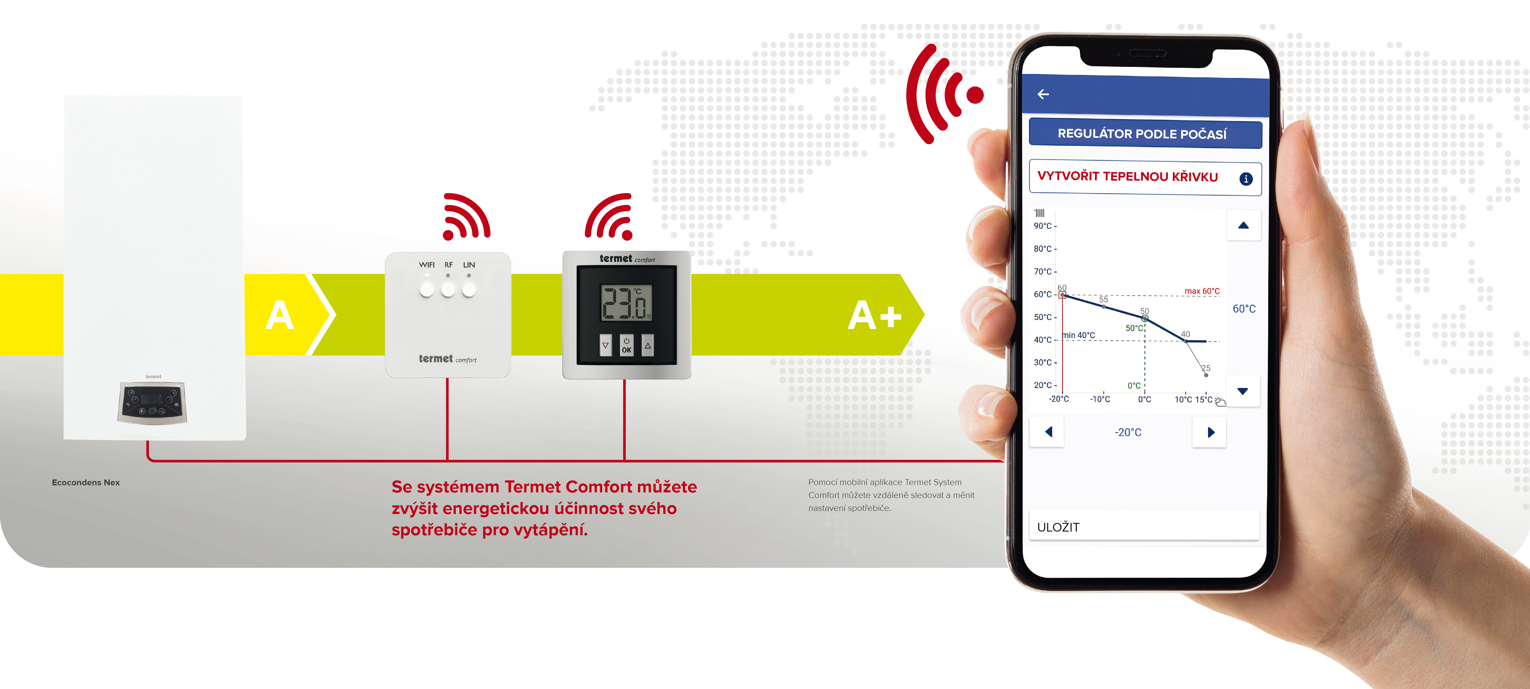 Díky inteligentnímu ovládacímu systému Termet Systém Comfort má uživatel plnou kontrolu nad vytápěním i přípravou teplé vody – jednoduše, přehledně a podle vlastních potřeb.