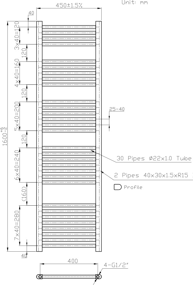 OTOPNÉ TĚLESO 450 MM ROVNÉ - CHROM