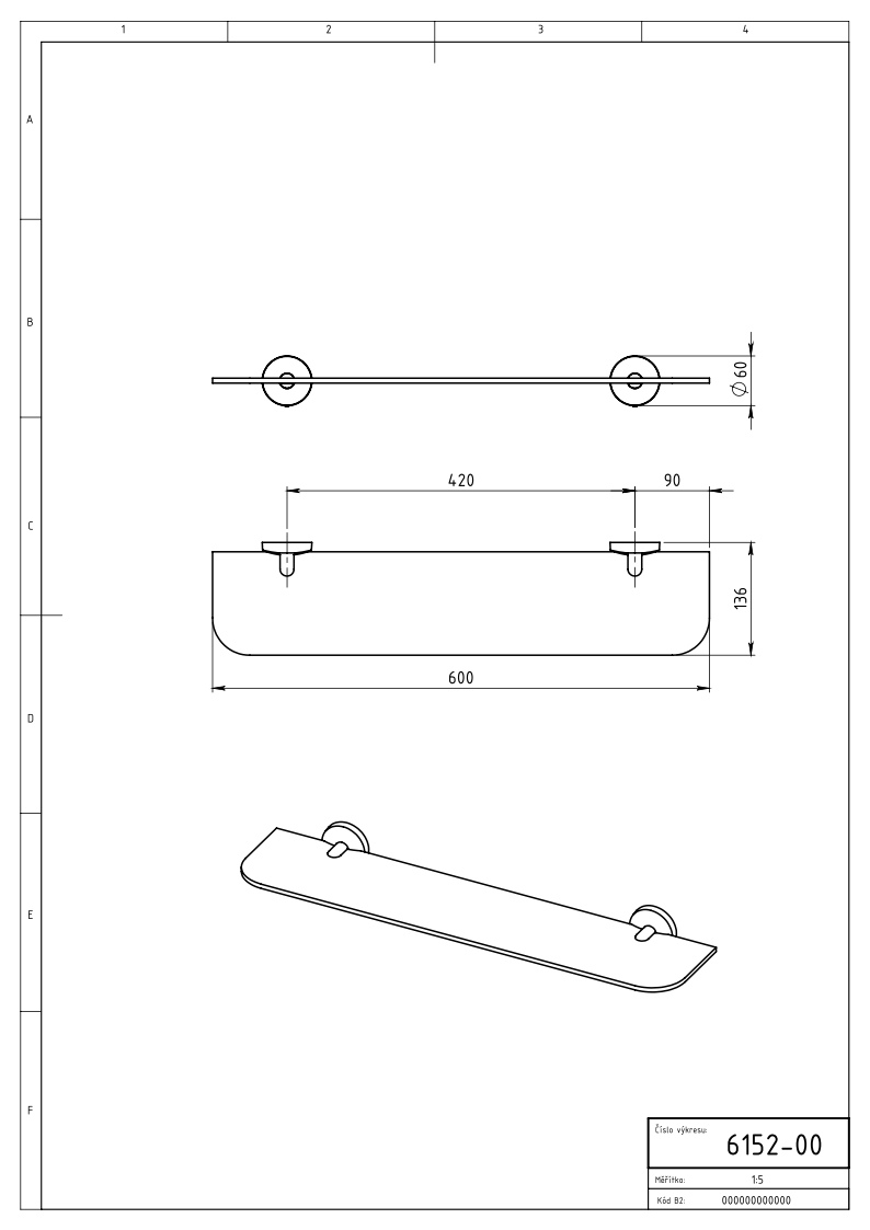 Rozměr skla poličky 125 x 600 mm.