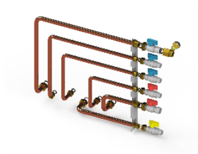 Pravá připojovací sada ke kotli Solid Comfort s kulovými kohouty a filtry a s upevňovací lištou