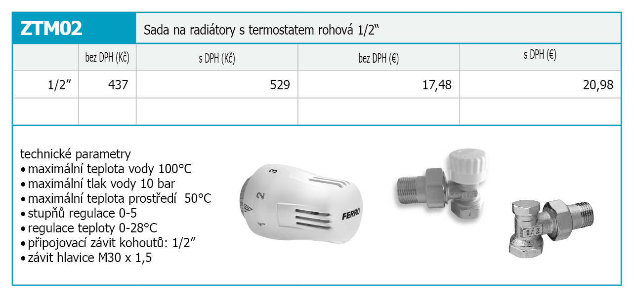 Sada na radiátory s termostatem rohová 1/2"